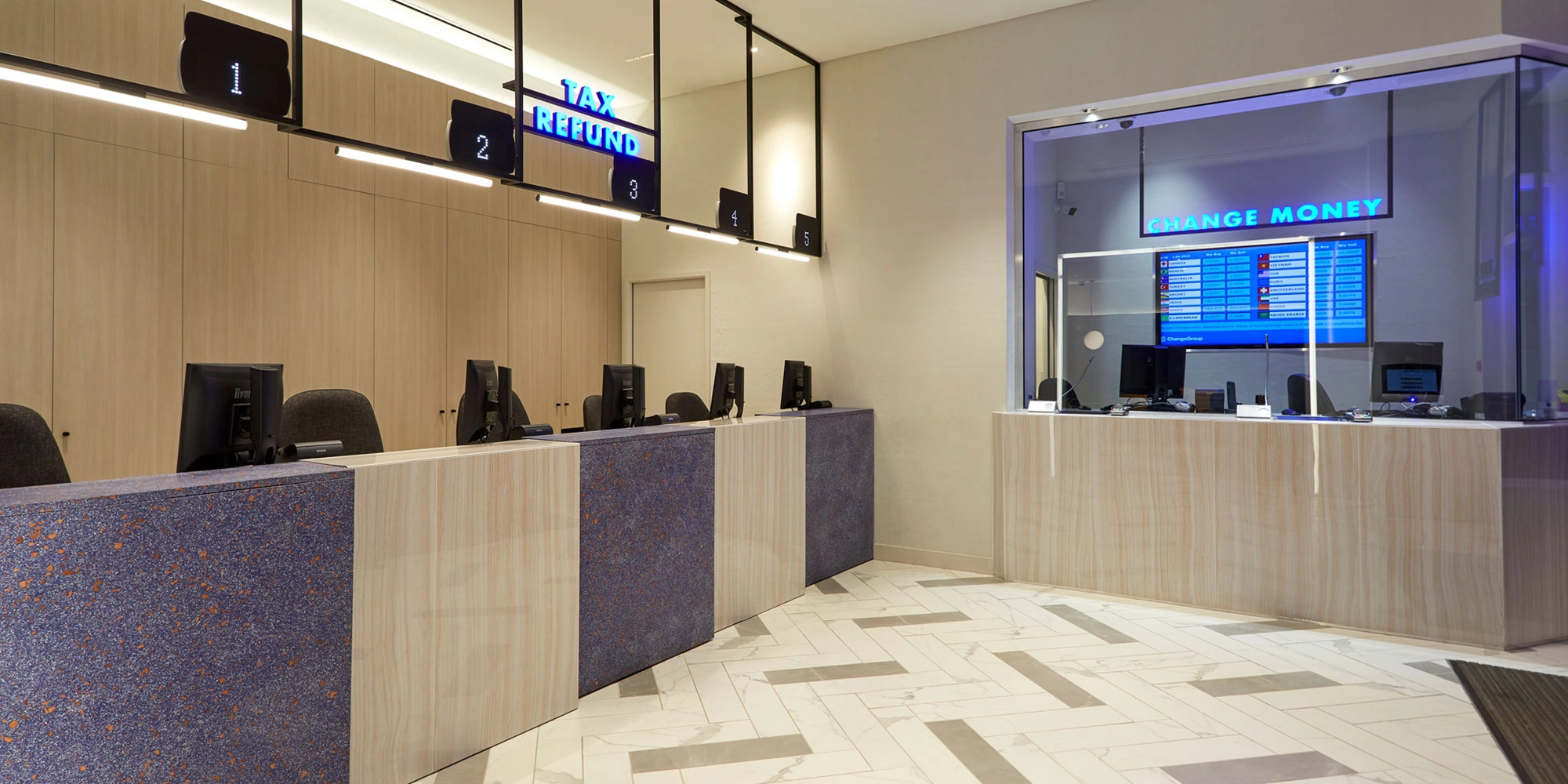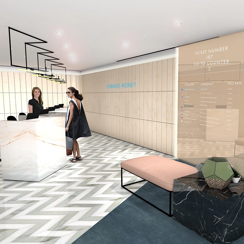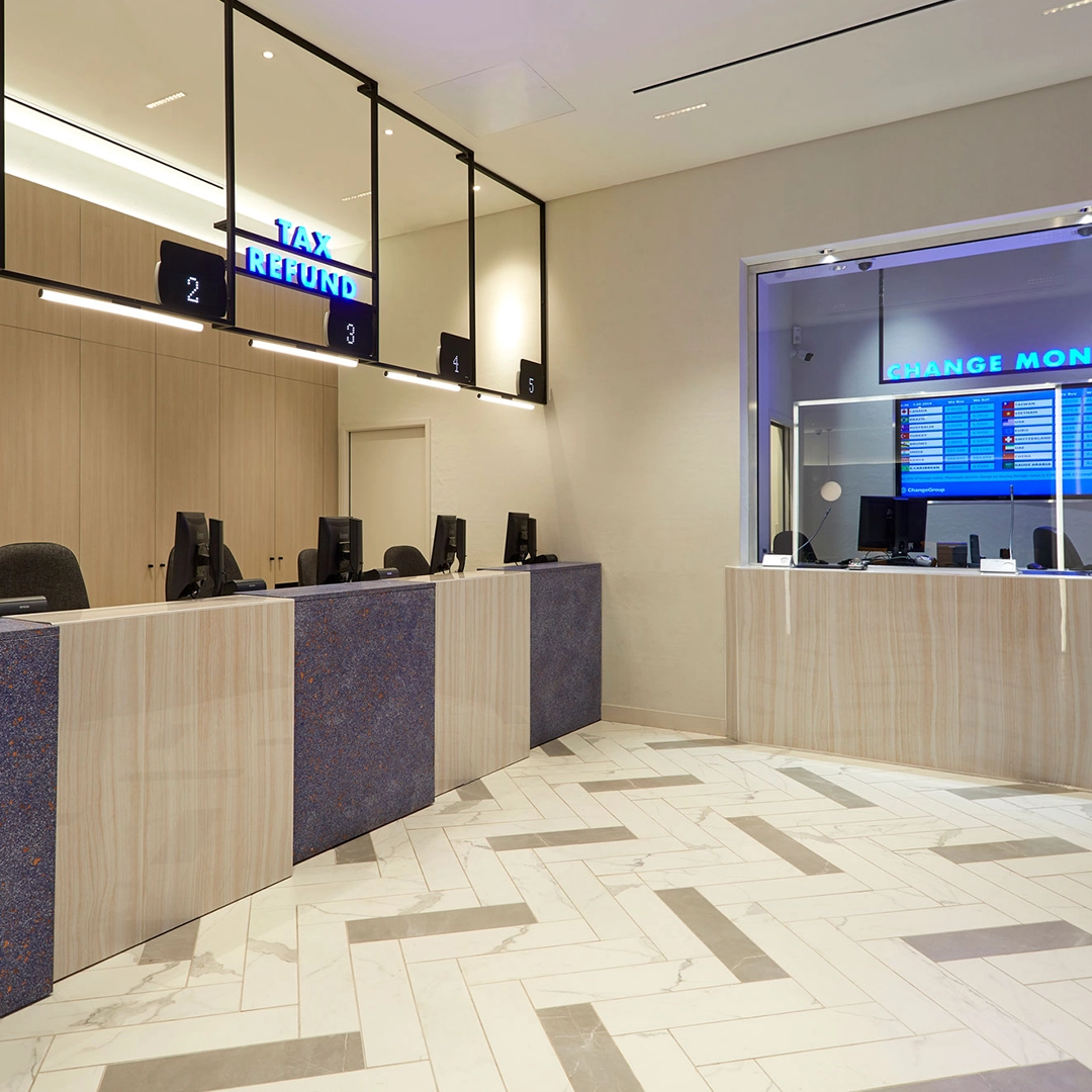 Currency exchange is often seen as transactional and impersonal. Counters are typically defined by security glass, creating a barrier between staff and customers. ChangeGroup asked us to break that mould, while still designing spaces that worked securely and efficiently.