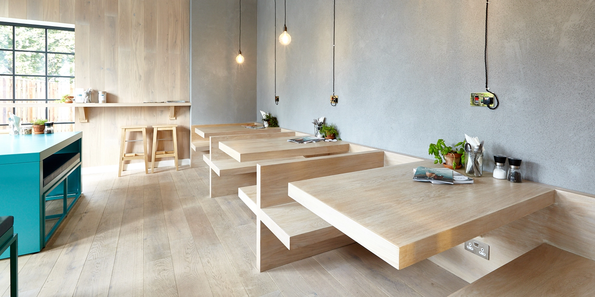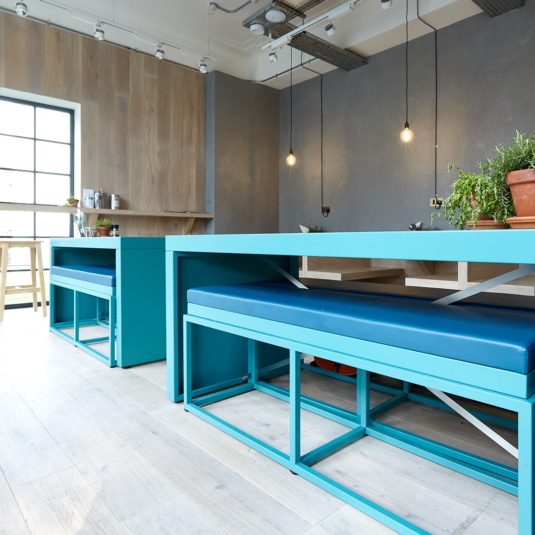 Working with Now London (now IDL Group), we developed a Californian-inspired interior that felt fresh, open and uplifting. Natural materials and bold colour accents gave the café a distinctive vibrancy. Every element – from layout to furniture – was considered for adaptability, allowing the space to transform easily as activities changed throughout the day.