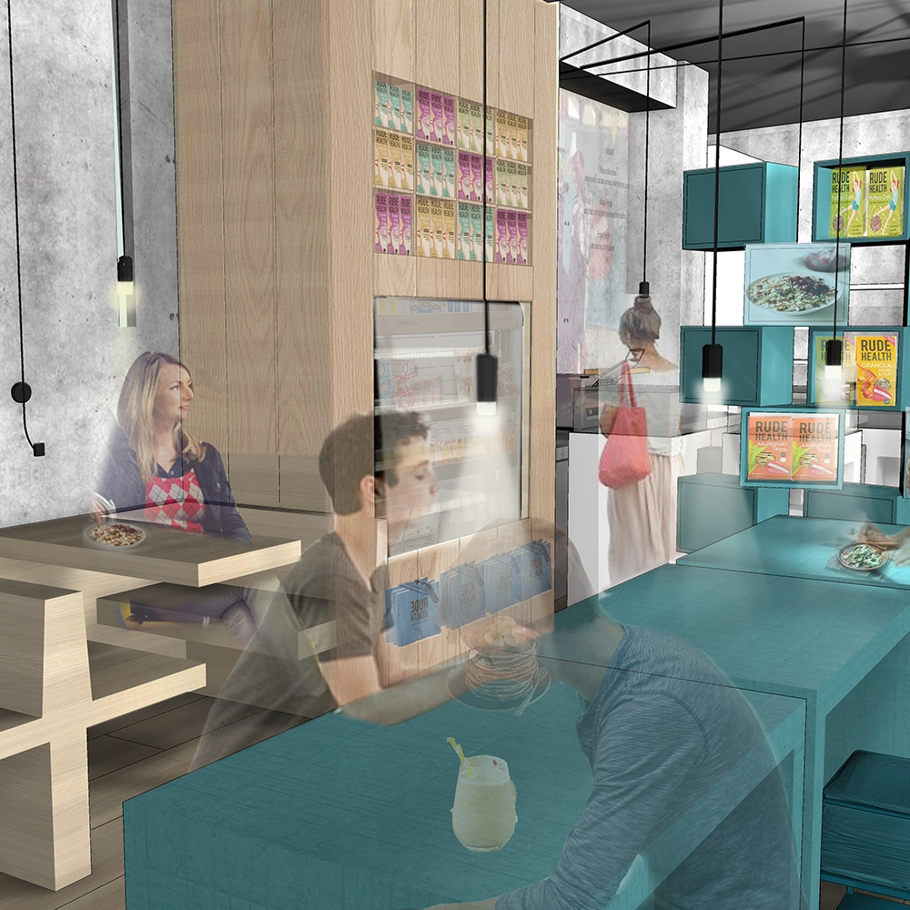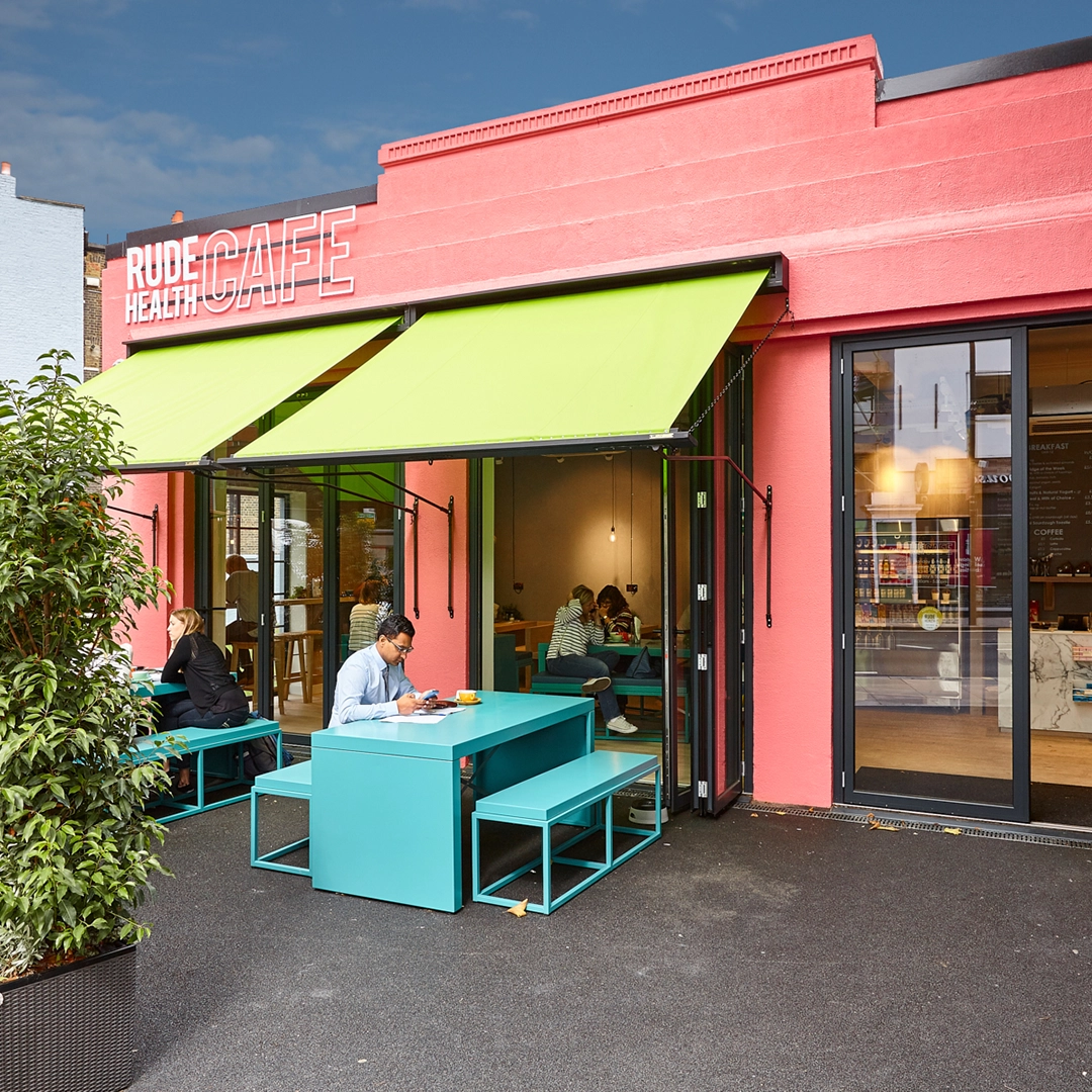 The design needed to embody Rude Health’s energetic, optimistic personality while supporting a mix of uses. The space had to shift seamlessly from a busy daytime café into an evening studio or event venue – all without losing its warmth or identity.