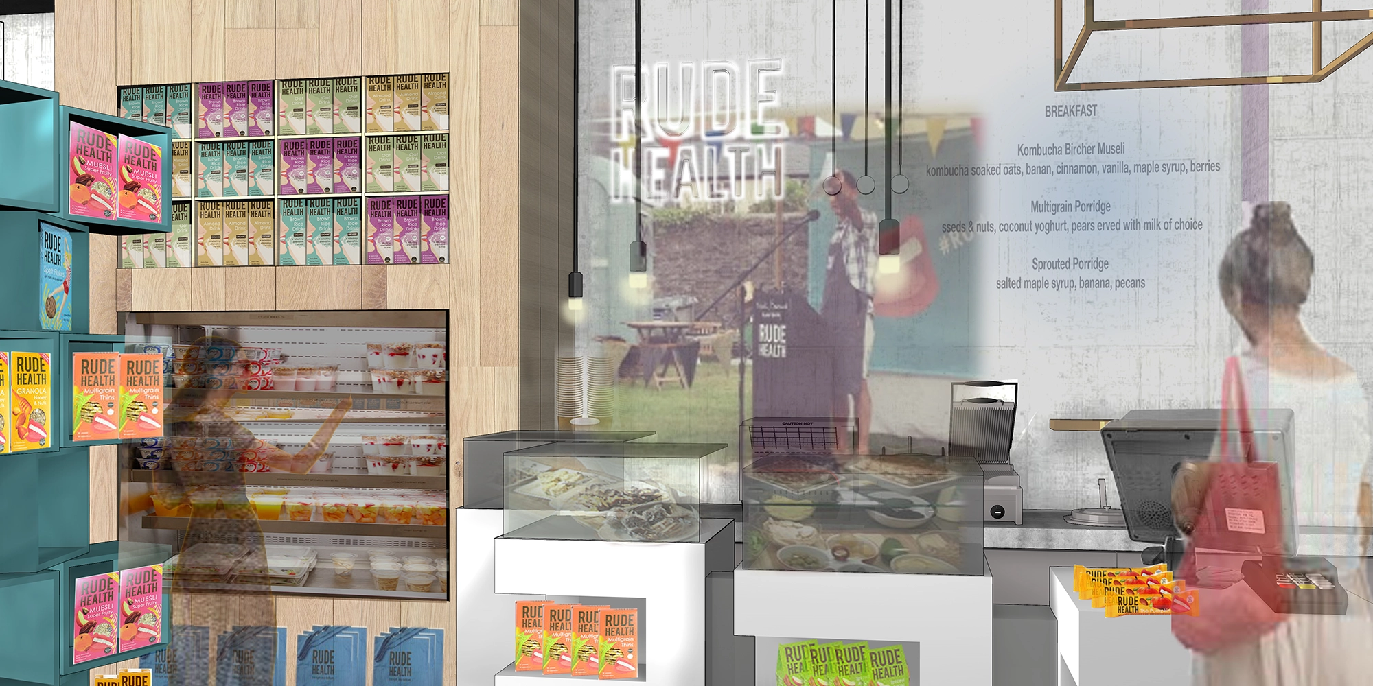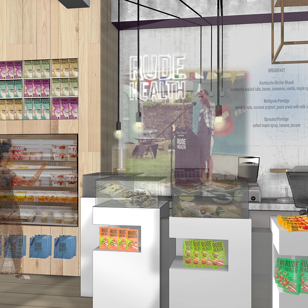 The result is a welcoming, multi-purpose hub that feels unmistakably Rude Health. More than a café, it’s a place to connect, recharge and experience the brand’s spirit of wellbeing – a physical expression of living in rude health.