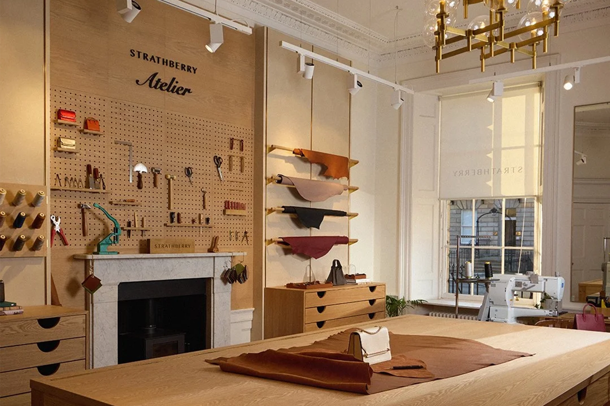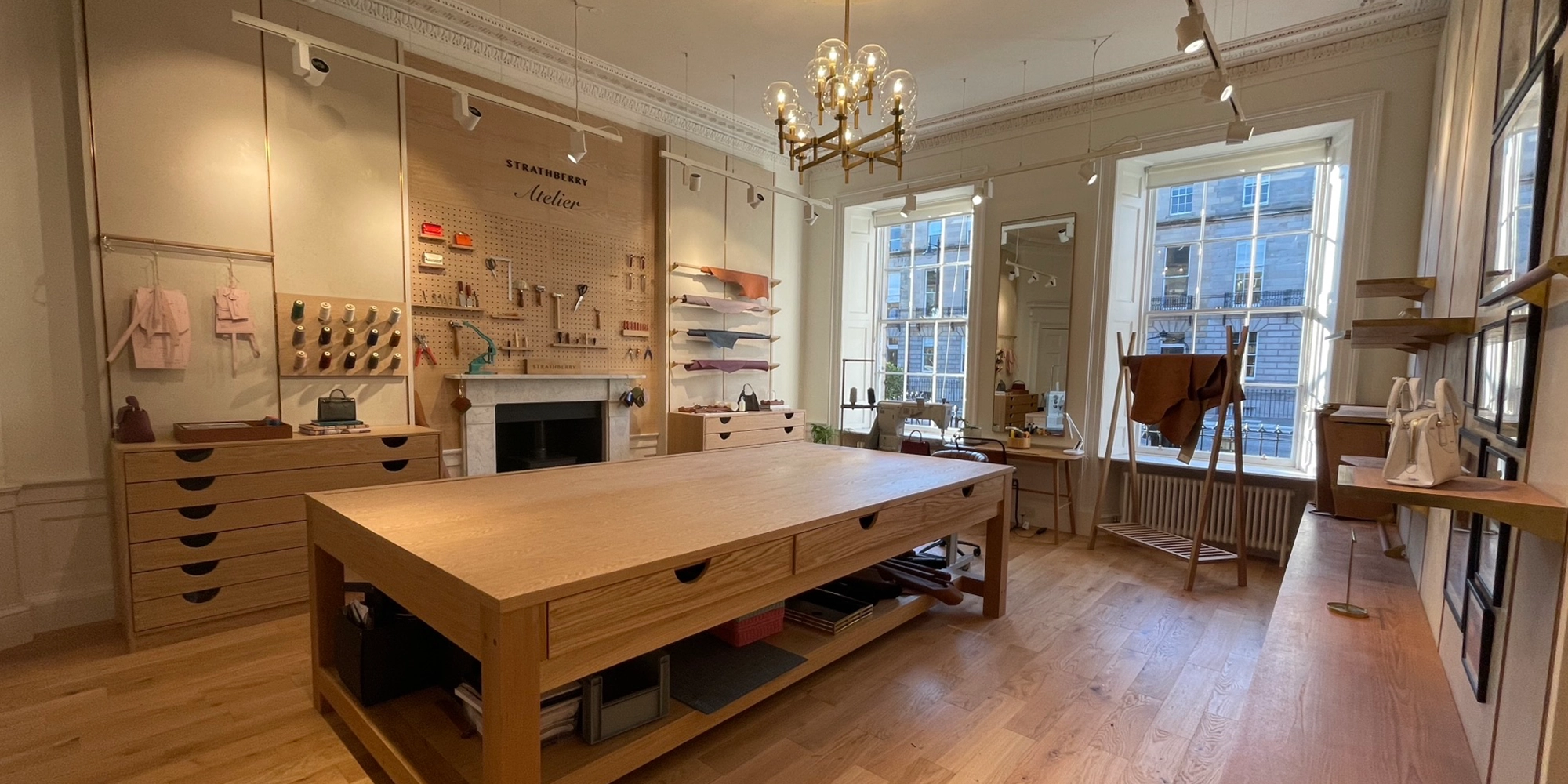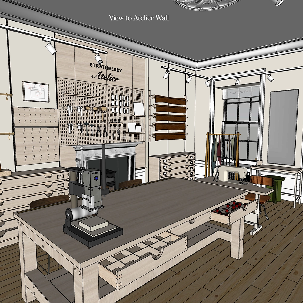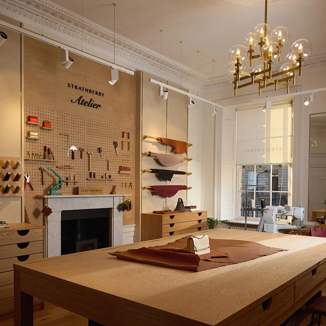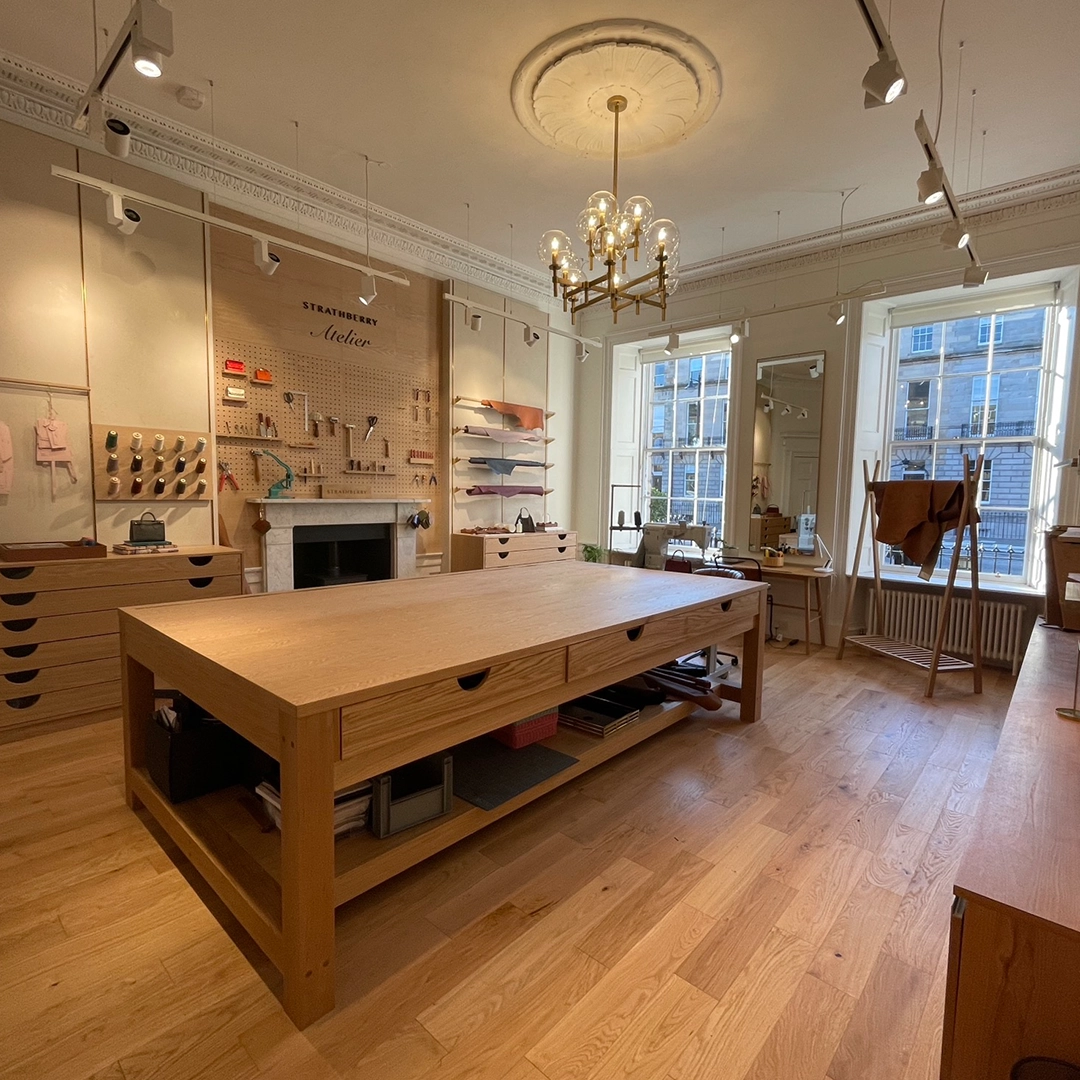 At their Edinburgh townhouse headquarters, Strathberry wanted a space that did more than display products. They asked us to create an atelier that would highlight the artistry behind their handbags, celebrate their heritage and provide a functional workshop for their team.